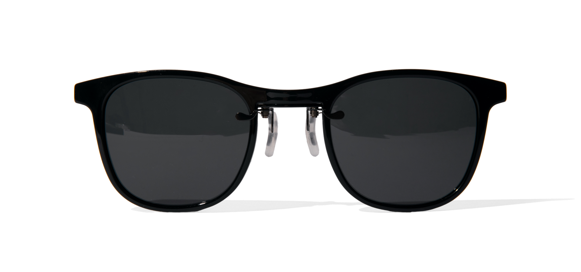 FlyFrames are designed to sit securely on the bridge of your nose by gently squeezing the two black handles in front of the sunglasses, which will adjust the clear nose pieces to your preferred position.