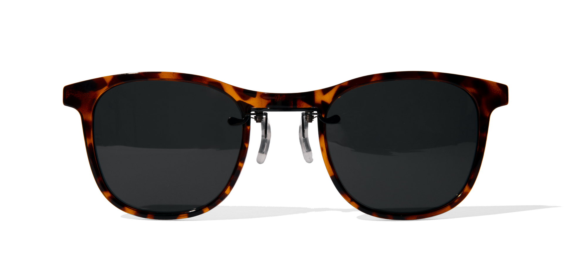 FlyFrames are designed to sit securely on the bridge of your nose by gently squeezing the two black handles in front of the sunglasses, which will adjust the clear nose pieces to your preferred position.