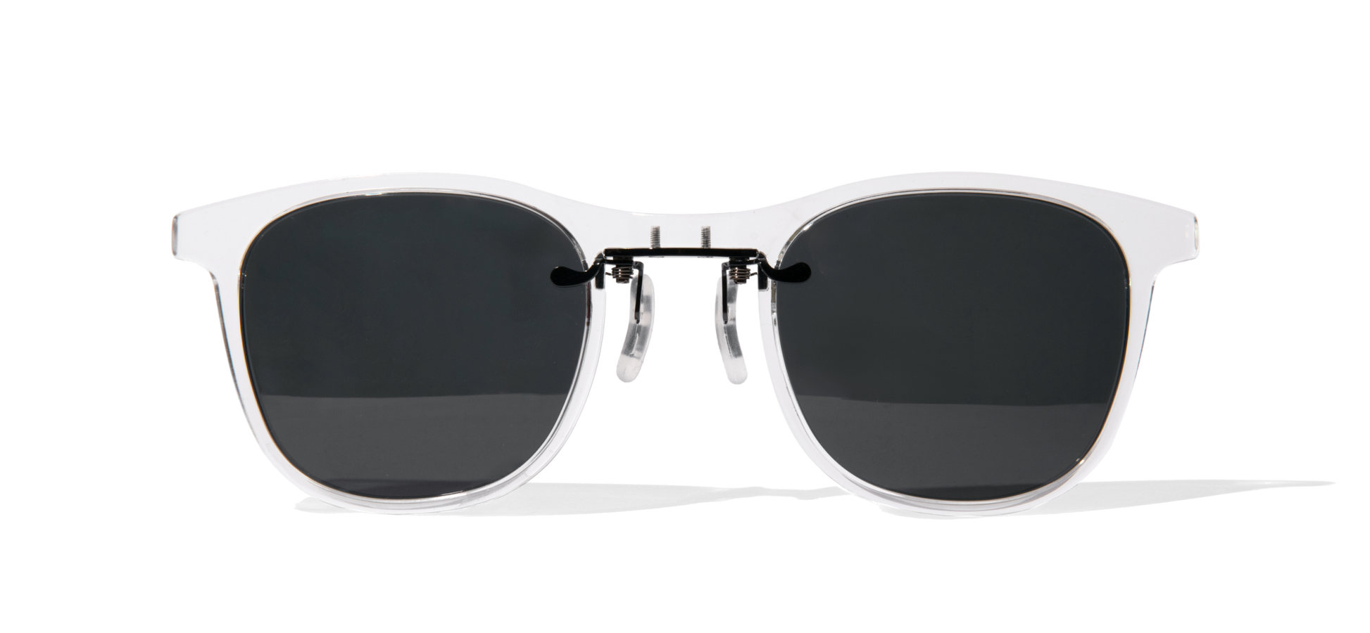 FlyFrames are designed to sit securely on the bridge of your nose by gently squeezing the two black handles in front of the sunglasses, which will adjust the clear nose pieces to your preferred position.